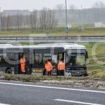 Groningen – Op de A7 bij knooppunt Westerbroek is dinsdagochtend een bus van de weg geraakt.