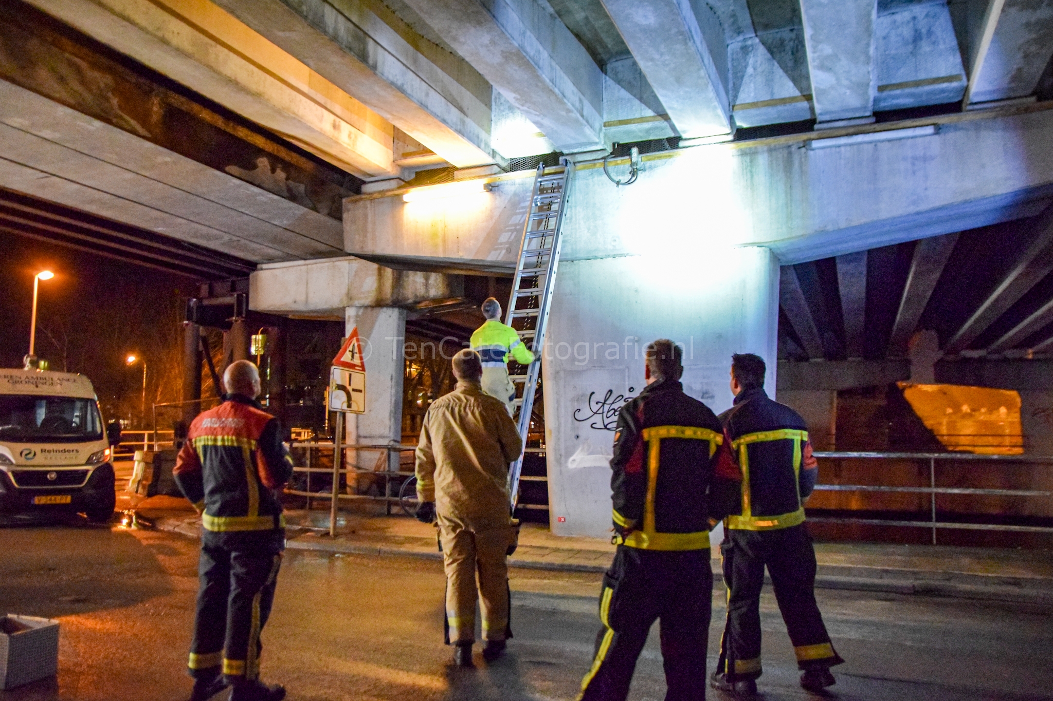 Groningen – De brandweer is zondagavond enige tijd bezig geweest met het bevrijden van het kat. Het dier zat vast achter een stuk gaas op een pilaar onder de Zuidelijke Ringweg.