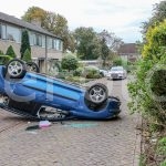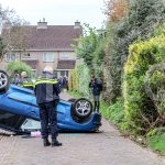 Het ongeluk gebeurde rond 12.40 uur. Hoe het ongeluk kon gebeuren is niet bekend. Ambulanciers hebben de bestuurder van het voertuig gecontroleerd, maar de persoon hoefde niet mee naar het ziekenhuis. De politie heeft onderzoek gedaan naar de toedracht. Een bergingsbedrijf heeft het voertuig geborgen. “Met behulp van een kraantje is de auto weer rechtop gezet. Daarna is het voertuig weggesleept.” De straat was vanwege het ongeluk enige tijd afgesloten.