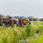 Eén van de brandweerlieden ging in een waadpak het water in om de band aan het dier te bevestigen. Na ruim een half uur lukte het, met gezamenlijke inspanning van de brandweer en de eigenaar, om het paard weer op het droge te krijgen. Ogenschijnlijk is het dier niet gewond geraakt.