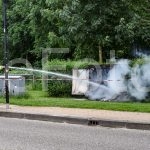 Rond 17.15 uur was de stroomkast volledig verwoest is. Brandweerwoordvoerder Edwin Oosterheerd liet eerder weten dat er niet geblust wordt vanwege de nodige risico’s. Toen de kast nog enkel rookte vertelde Oosterheerd: “Als je nu een blussing start wordt de schade vele malen groter.” Rond 18.00 uur wordt besloten om toch een blussing te doen. Een brandweerman heeft de restanten afgeblust. Kort daarna werd de afzetting opgeheven en keerde de brandweer weer terug.