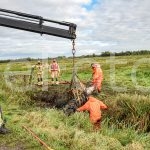 Na het aanbrengen van een veetakel, onder het paard door, kon het dier uit de sloot worden getakeld. Dit alles gebeurde onder grote belangstelling van de andere paarden die vanuit het weiland de bewegingen nauwgezet volgden. Hoe het dier in de sloot kon geraken is onbekend. Ogenschijnlijk heeft het paard geen verwondingen opgelopen.