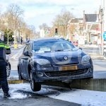 Groningen – Een automobilist is woensdagmiddag op een betonnen wegafscheiding terecht gekomen aan de Hereweg,