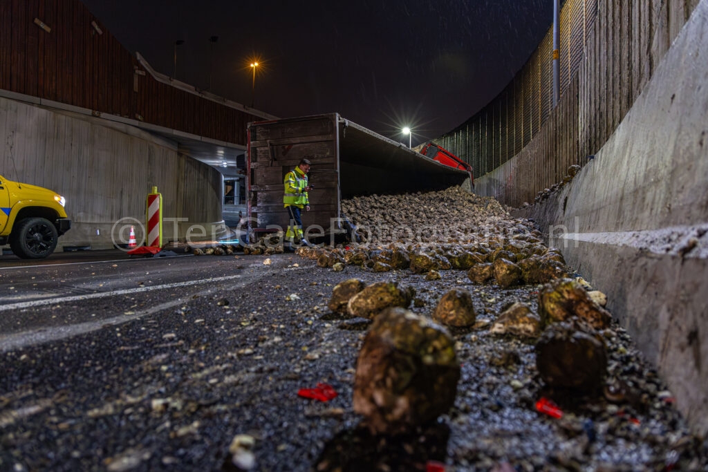 Bietenwagen gekanteld in verbindingsboog bij Vrijheidsplein