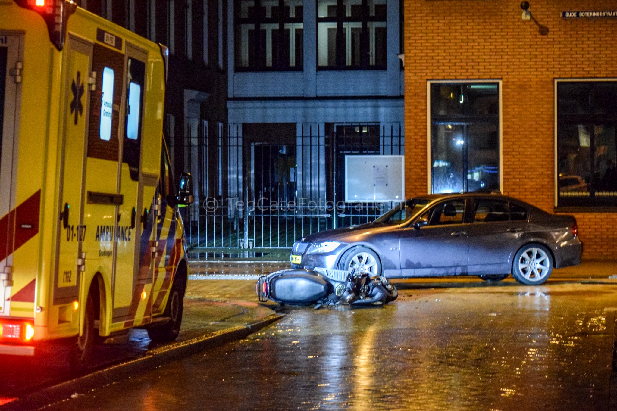 Groningen – Een scooterrijder is donderdagavond gewond geraakt bij een ongeluk in de Oude Boteringestraat.