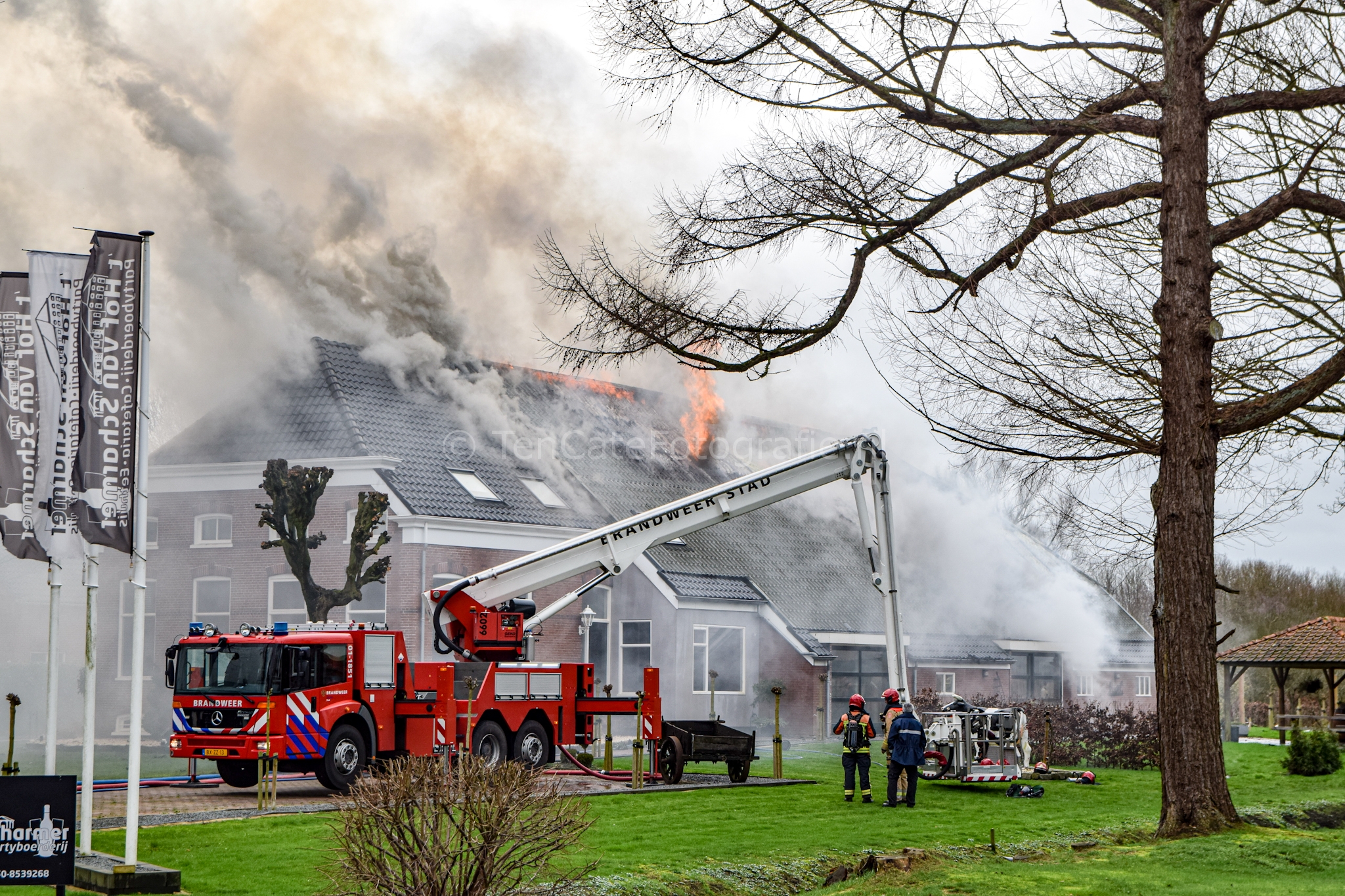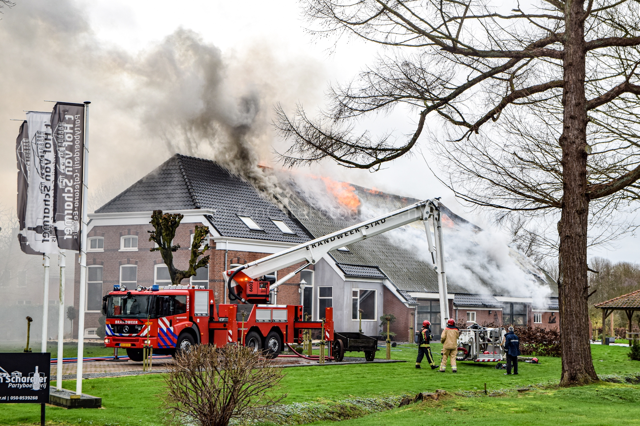 De melding van de brand kwam even na 11.30 uur binnen. “Het gaat om een uitslaande brand in een partycentrum aan de Hoofdweg in Scharmer”, vertelt een woordvoerder van de brandweer. “We hebben opgeschaald naar ‘grote brand’. Drie blusvoertuigen zijn ter plaatse om het vuur te bestrijden. Om ons van voldoende water te voorzien is ook het groot watertransport opgeroepen.”
