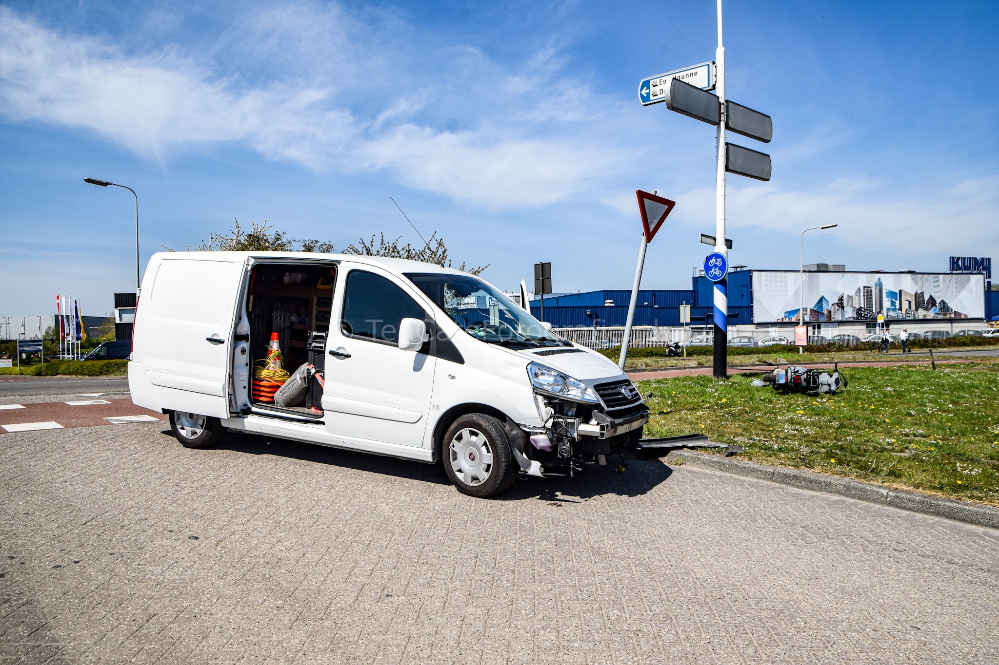 Groningen – Op de Bornholmstraat is donderdagmiddag een scooterrijder aangereden door een busje.Het ongeluk gebeurde rond 13.40 uur ter hoogte van de kruising met de Gotenburgweg. Naar alle waarschijnlijkheid heeft de bestuurder van het busje de scooterrijder over het hoofd gezien waardoor een aanrijding het gevolg was. Ambulancemedewerkers hebben het slachtoffer gestabiliseerd. Daarna is deze met onbekende verwondingen overgebracht naar het ziekenhuis. Zowel de scooter als het busje raakten bij het ongeluk flink beschadigd.