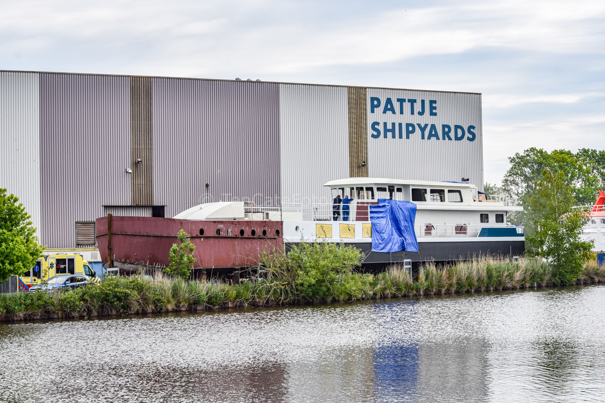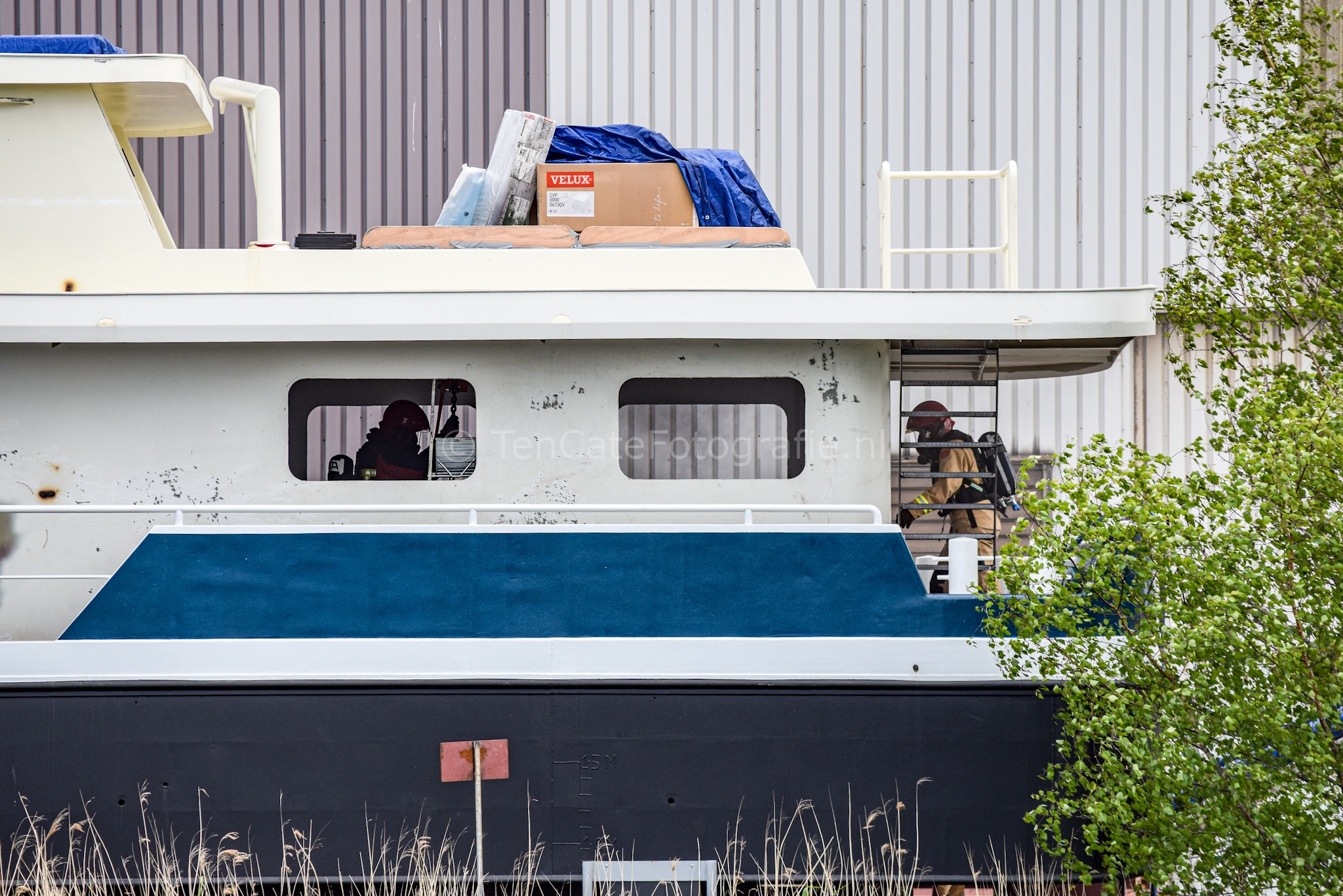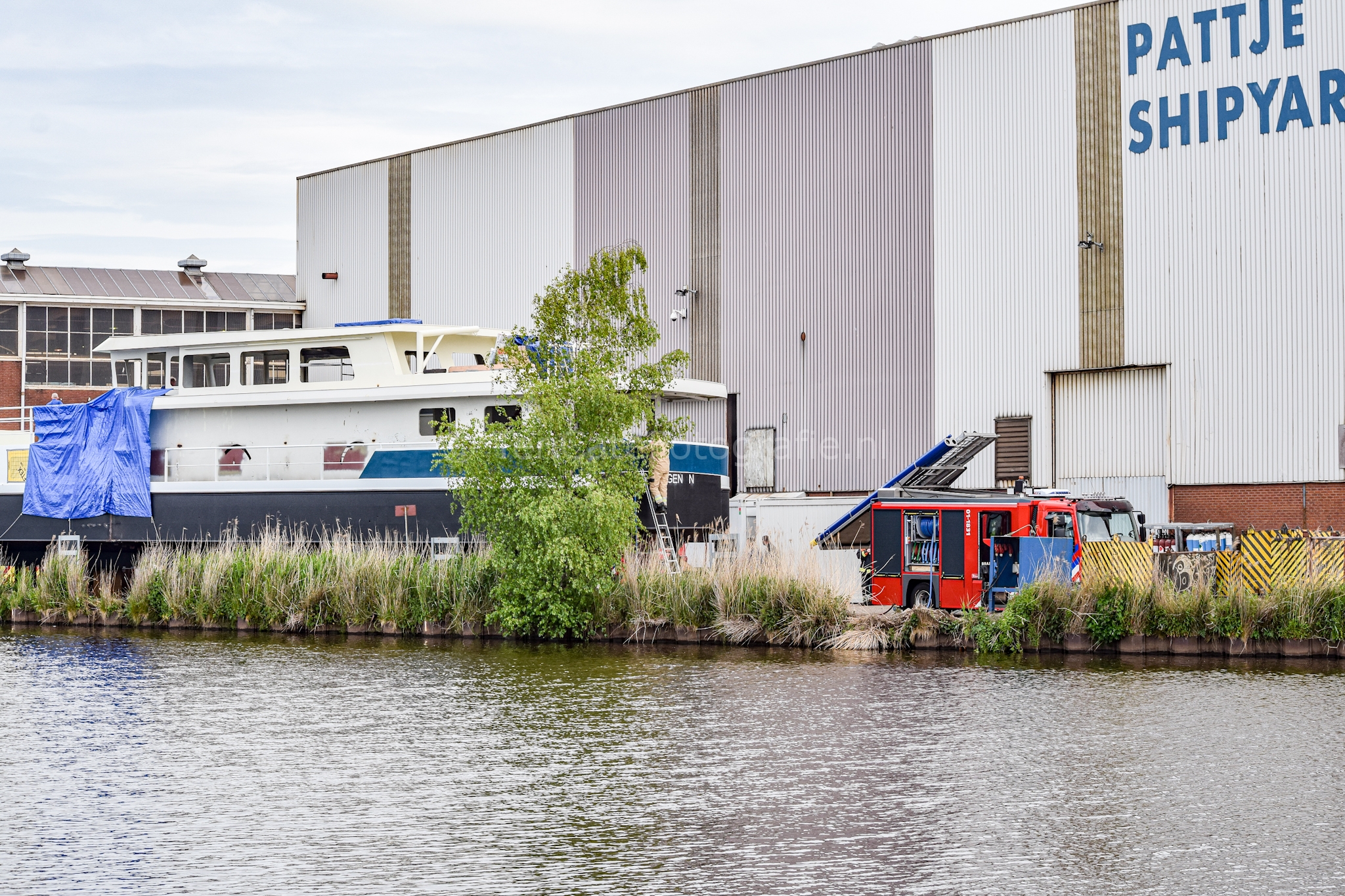 Waterhuizen – De brandweer is maandagochtend uitgerukt voor een brand op een schip gelegen bij Pattje Schipyards in Waterhuizen.
