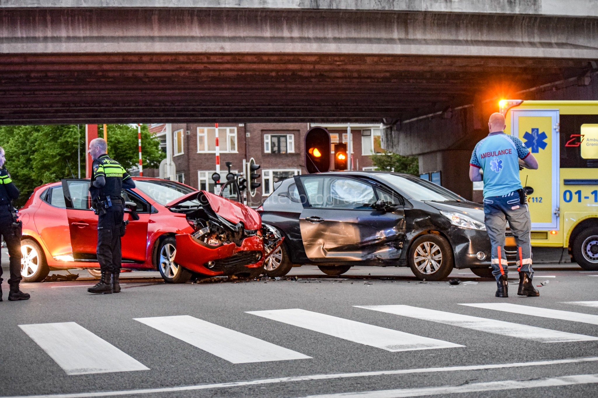 Het ongeluk gebeurde rond 21.40 uur ter hoogte van de kruising met het Hoornsediep. Hoe het precies kon gebeuren is onbekend. Twee personenauto’s zijn op de kruising op elkaar gebotst. Beide voertuigen hebben veel schade opgelopen. Verschillende politiewagens en ambulances zijn ter plaatse gekomen. Verpleegkundigen hebben meerdere personen gecontroleerd. Uiteindelijk is één automobilist met onbekende verwondingen meegenomen naar het ziekenhuis.