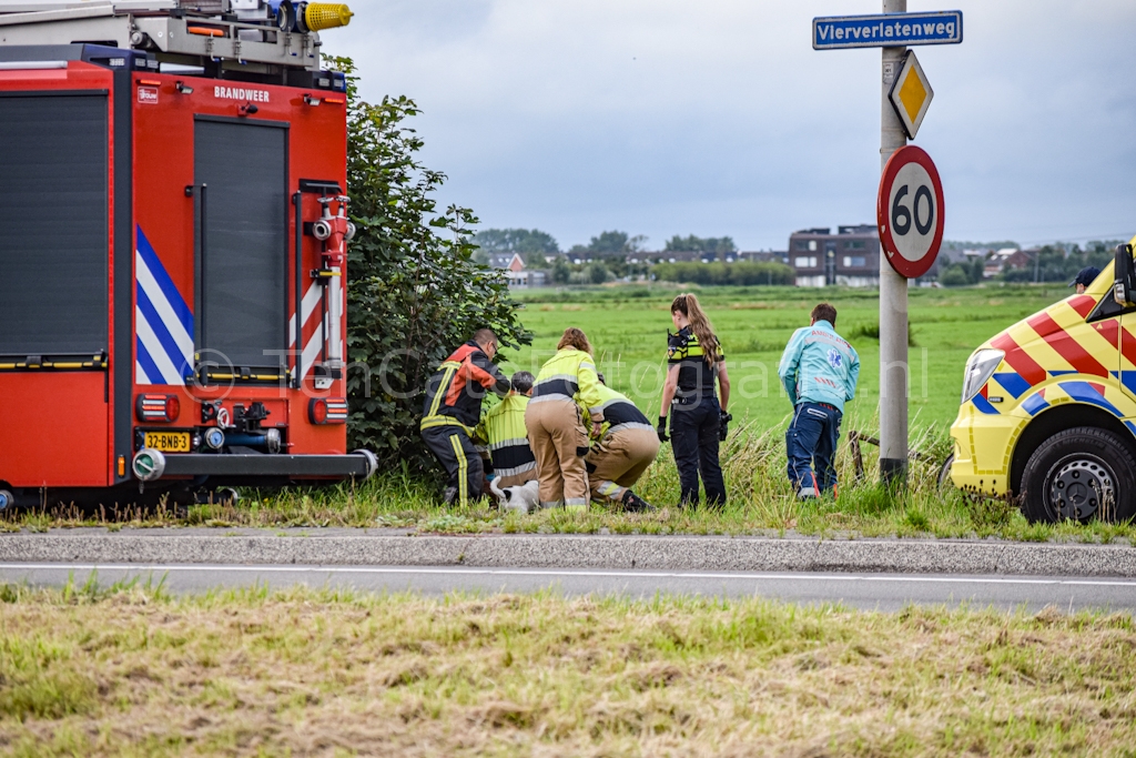 Het ongeluk gebeurde rond 20.25 uur ter hoogte van de kruising met het Hoendiep. Hulpdiensten rukten massaal uit. Behalve een ambulance en de politie kwam ook de brandweer ter plaatse. Door nog onbekende oorzaak is een man in een scootmobiel in een sloot terecht gekomen. Bij aankomst van de brandweer stond de man in de sloot. Brandweerlieden hebben hem op het droge getrokken. Daarna is het slachtoffer met onbekende verwondingen overgebracht naar het ziekenhuis.