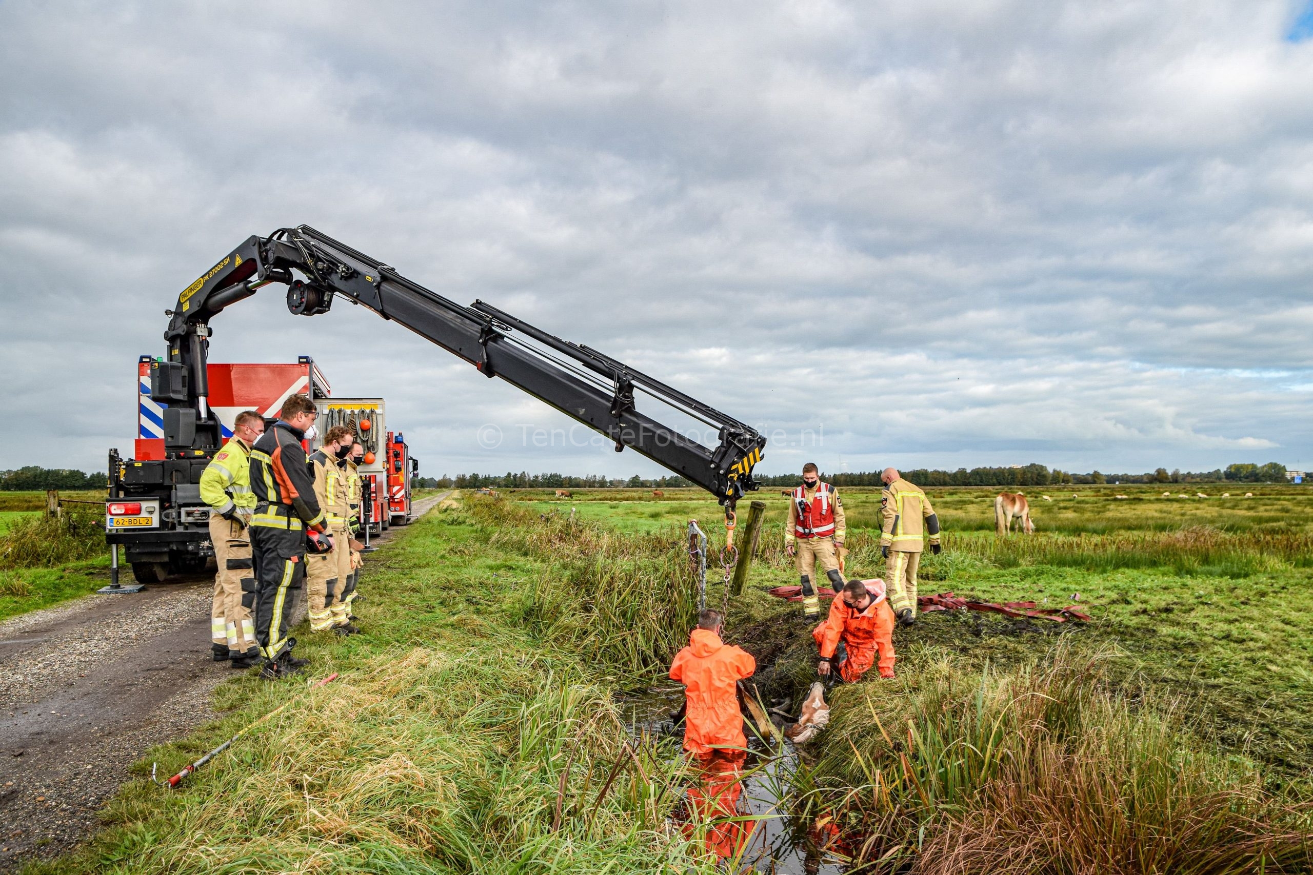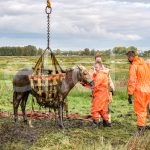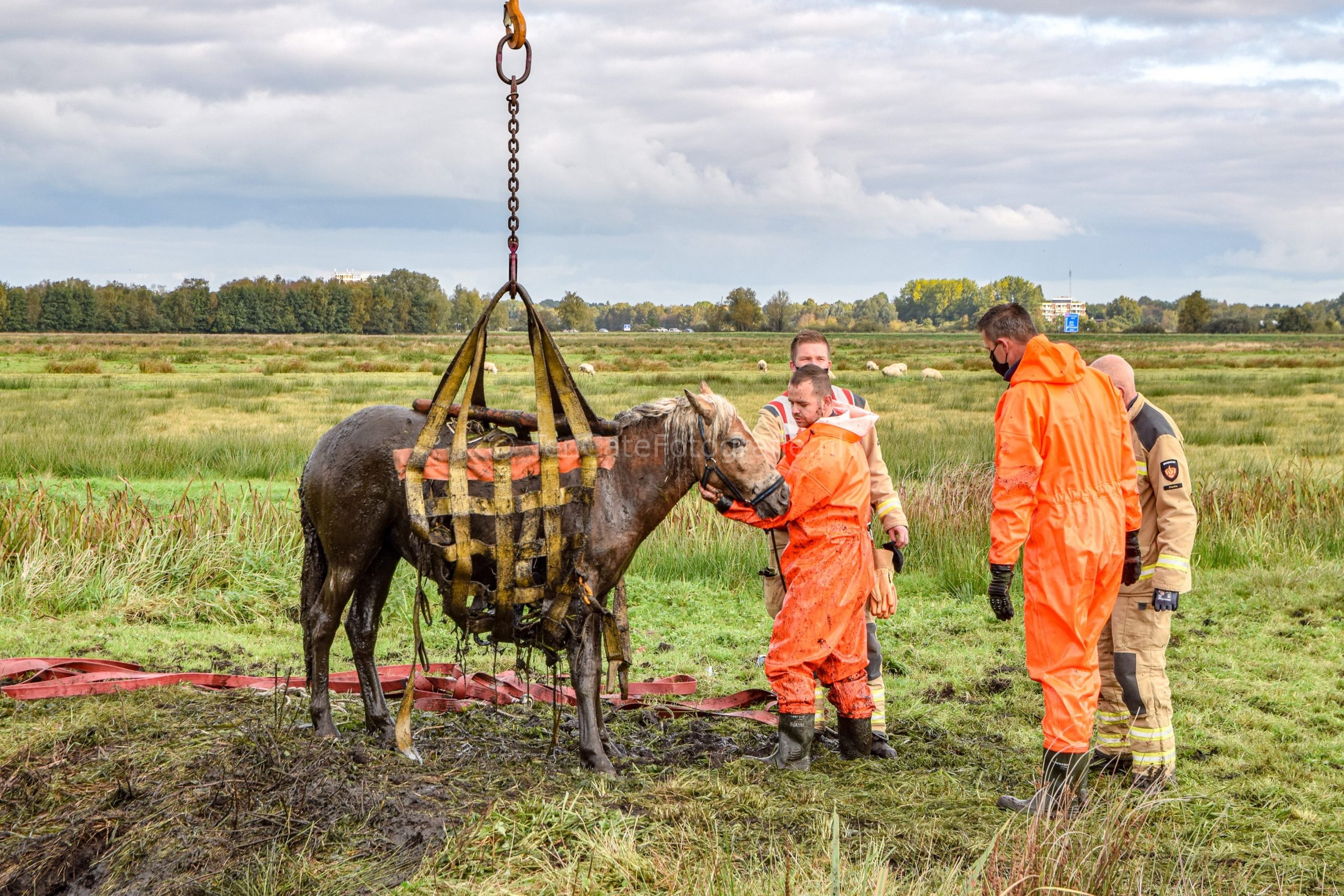 Na het aanbrengen van een veetakel, onder het paard door, kon het dier uit de sloot worden getakeld. Dit alles gebeurde onder grote belangstelling van de andere paarden die vanuit het weiland de bewegingen nauwgezet volgden. Hoe het dier in de sloot kon geraken is onbekend. Ogenschijnlijk heeft het paard geen verwondingen opgelopen.