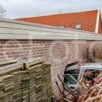 Hoogkerk – Een automobilist is woensdagmiddag op de parkeerplaats van de Lidl in Hoogkerk door een muur van een garagebox gereden.