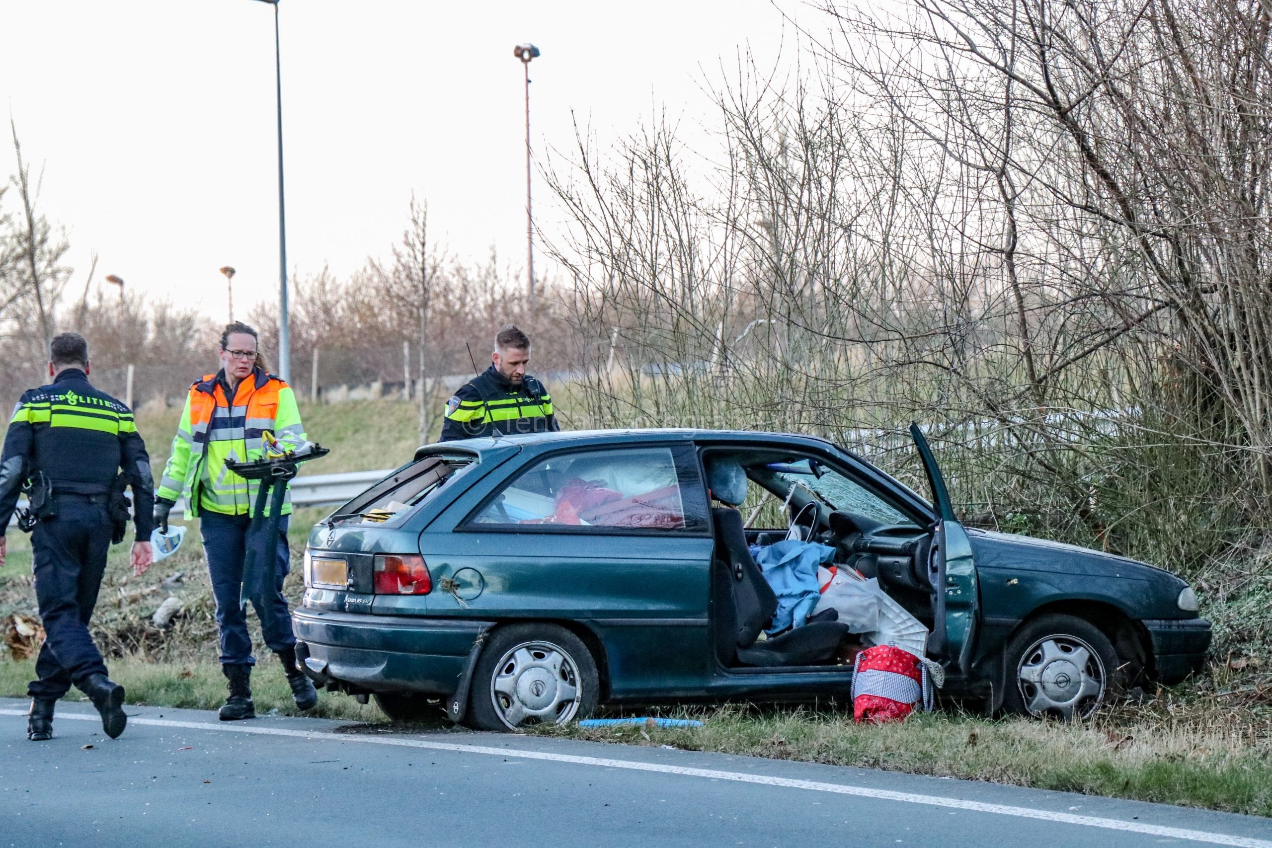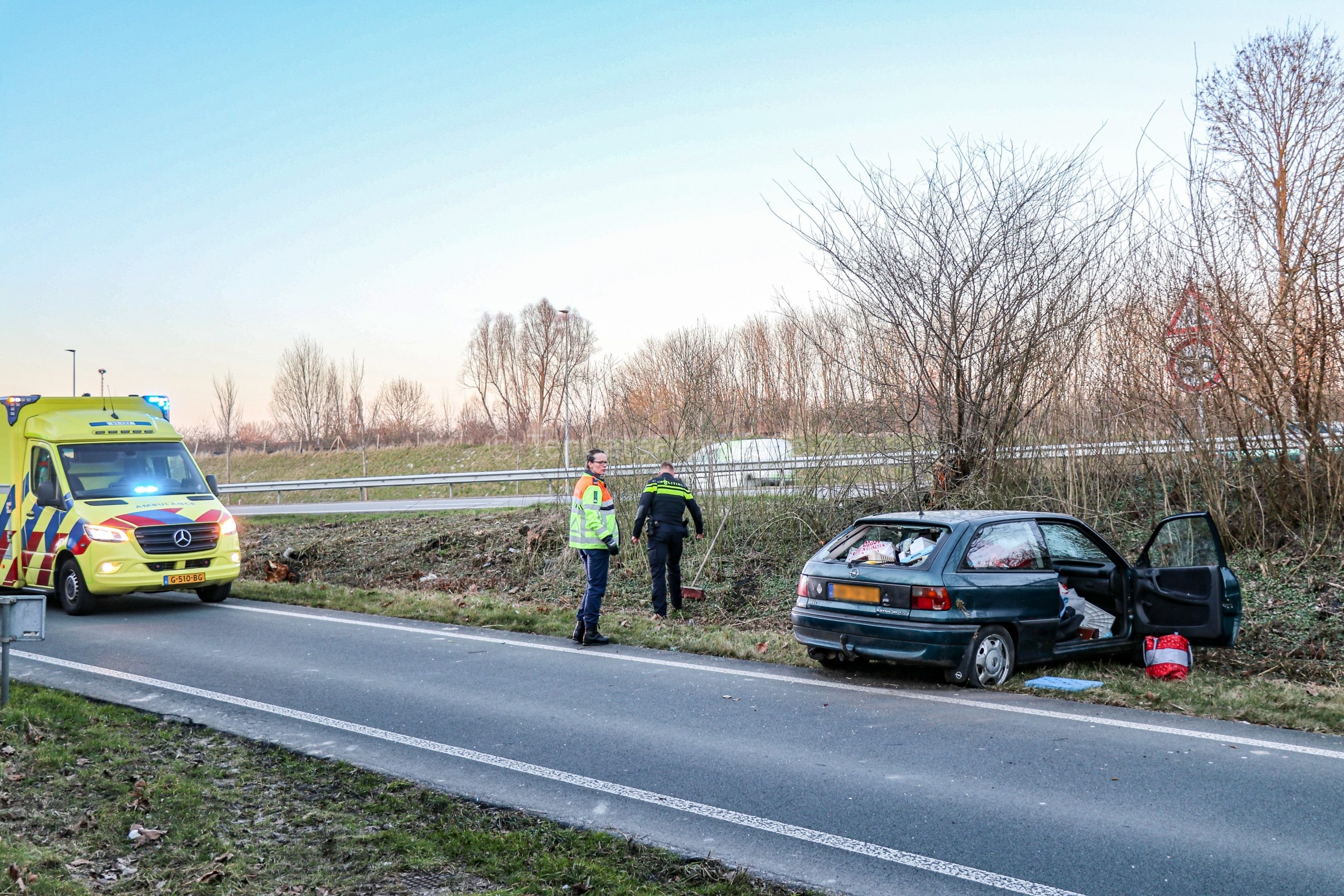 De bestuurder raakte daarbij een boom en kwam uiteindelijk tot stilstand in de berm. De hulpdiensten waaronder de brandweer werden omstreeks kwart voor zes opgeroepen. De automobilist is na controle door het ambulancepersoneel naar het ziekenhuis overgebracht. Hoe het ongeluk kon gebeuren, is niet bekend. Door het ongeluk was de afrit korte tijd afgesloten, Rijkswaterstaat heeft de afrit schoongemaakt. De auto raakte zwaar beschadigd en moest worden afgesleept.