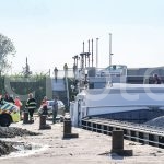 De aanvaring vond plaats rond 18.50 uur. “De brug is geraakt door een schip”, vertelt woordvoerder Christiaan Kooistra van Rijkswaterstaat Noord-Nederland. “Daarbij is er niemand gewond geraakt. Het wegverkeer over de brug is tijdelijk gestremd. We voeren op dit moment een inspectie uit aan de brug.” Rond 21.15 uur werd de brug weer geopend voor het wegverkeer. Onderzoek heeft uitgewezen dat er alleen sprake is van lakschade. “Het scheepvaartverkeer is ook stilgelegd. Deze stremming zal langer duren omdat er een auto te water is geraakt. Deze auto stond op het schip. Dit voertuig zullen we moeten lokaliseren en bergen. En dat geldt ook voor de materialen van de stuurhut die in het water terecht zijn gekomen.”