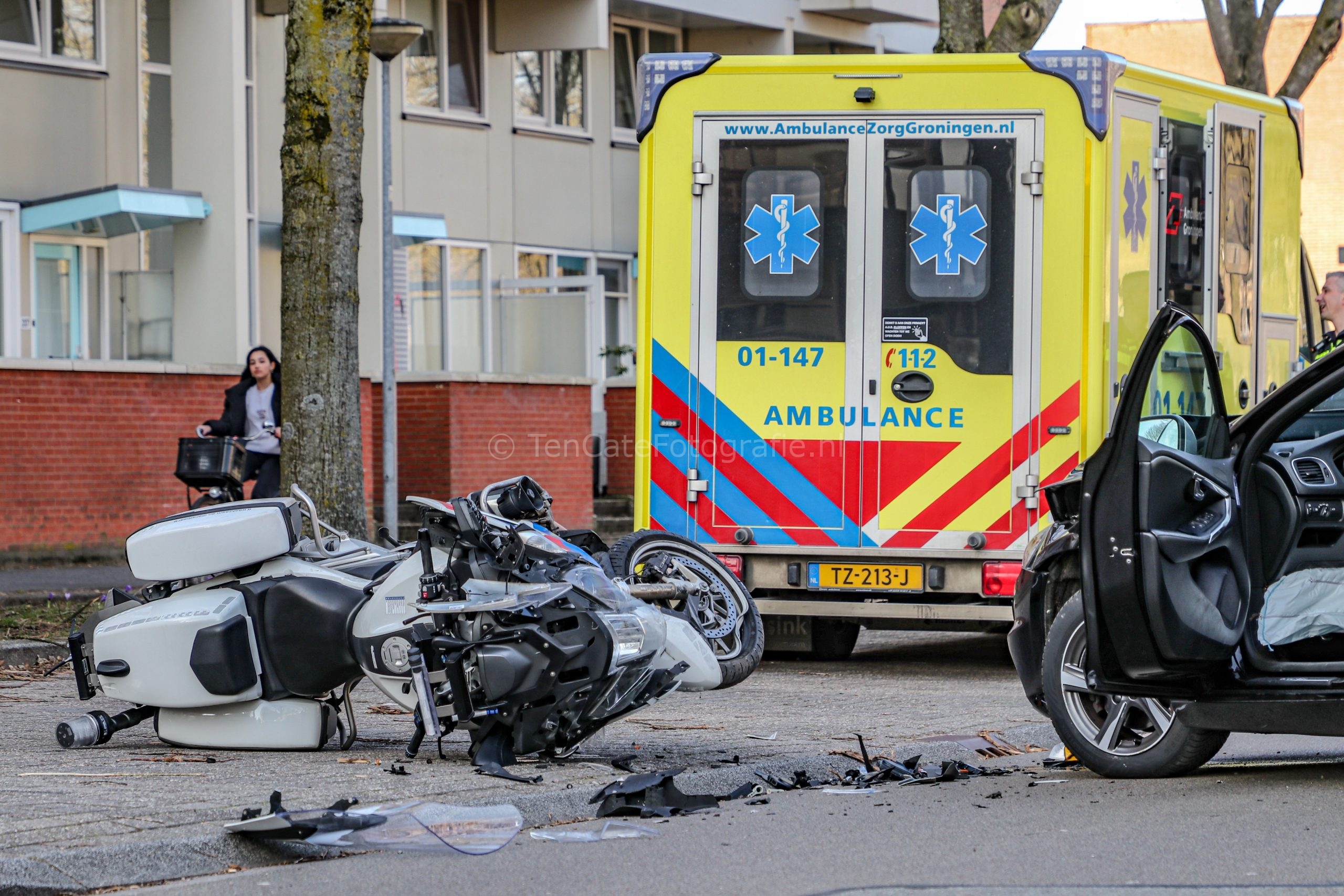 Groningen – Een motoragent is vrijdagmiddag gewond geraakt bij een ongeluk op de S.O.J. Palmelaan in Groningen.