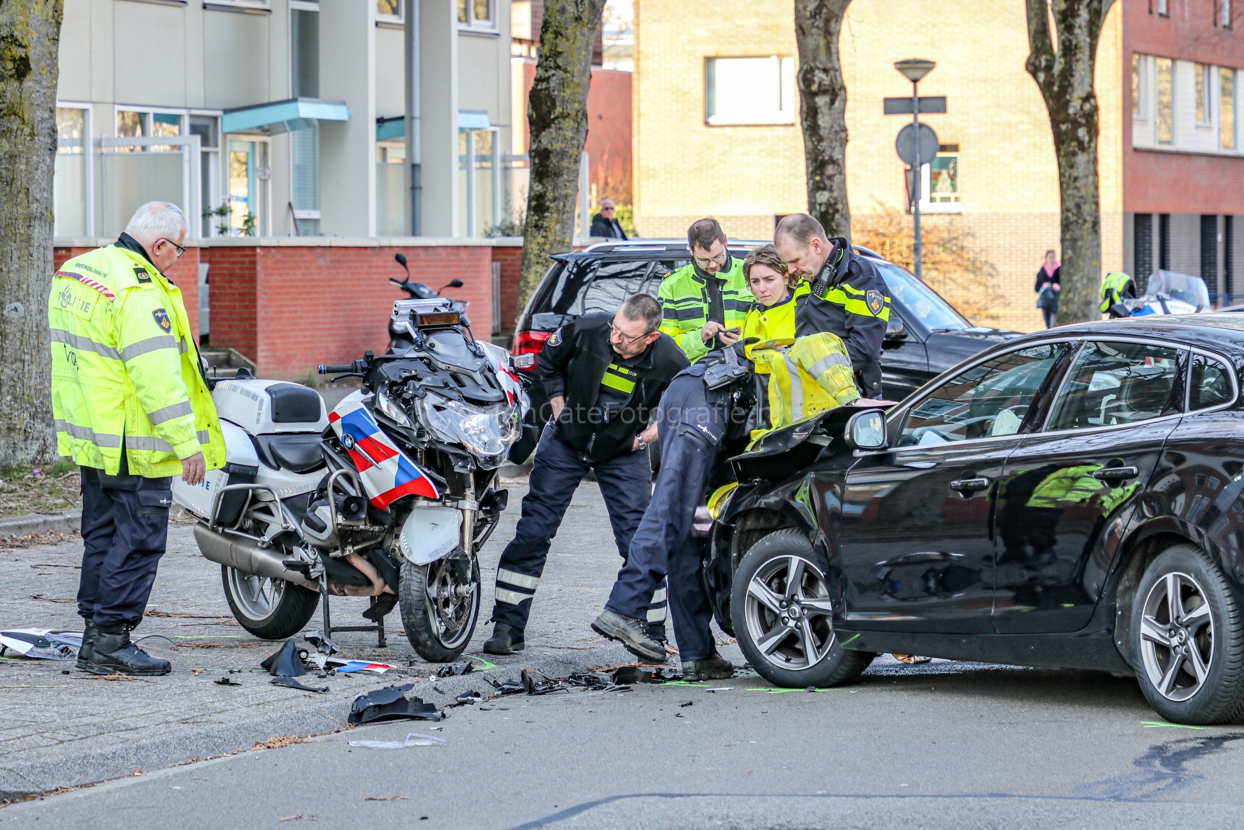 Het ongeluk gebeurde rond 15:30. hulpdiensten waren snel ter plaatse. Door nog onbekende oorzaak kwam de motoragent en een automobilist frontaal met elkaar in botsing. Verpleegkundigen van een ambulance hebben de motoragent behandeld en met onbekende verwondingen overgebracht naar het ziekenhuis. Verkeersspecialisten van de politie hebben onderzoek gedaan naar de toedracht van het ongeval. De weg was enige tijd afgesloten vanwege het ongeval.