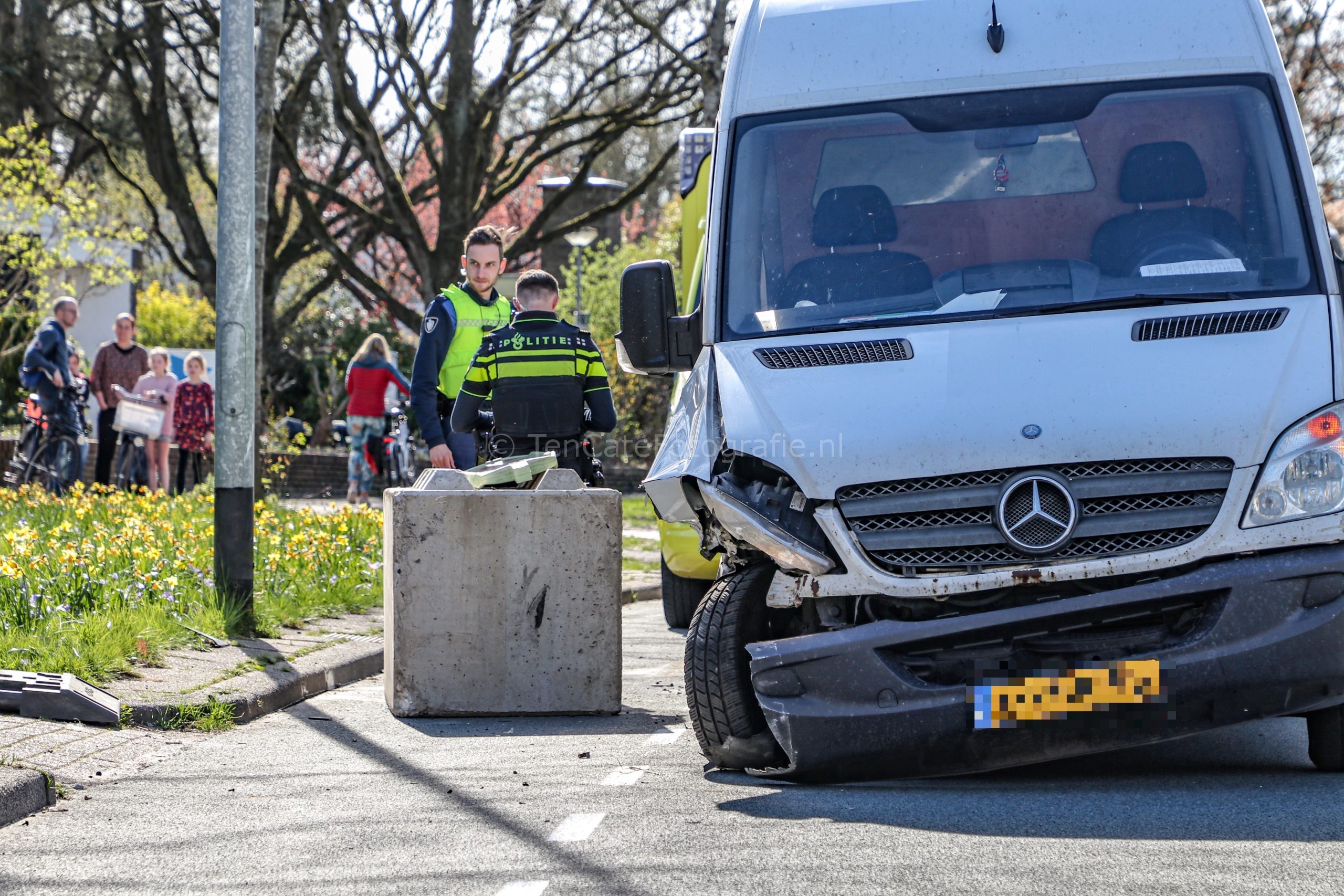 De bestelbus raakte bij het ongeluk zwaar beschadigd. Vanwege het ongeluk was de weg afgesloten. De politie heeft onderzoek gedaan naar de toedracht. Het betonblok is onlangs geplaatst vanwege een wegversmalling. Afgelopen donderdag knalde bestuurder van een bedrijfsbusje ook op een betonblok. Ook dit voertuig raakte flink beschadigd, de bestuurder bleef ongedeerd.