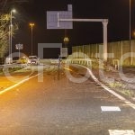 Uit veiligheidsoverwegingen staakten de politieauto’s daarop de achtervolging. Op dat moment reed een motoragent de afrit af en kwam daarbij waarschijnlijk frontaal in botsing met de automobilist. Omdat niemand de aanrijding zag gebeuren, lag de motoragent enige tijd in de berm langs de weg. Hij heeft verschillende botbreuken opgelopen door aanrijding. Een passant zag hem liggen en waarschuwde de hulpverleningsdiensten.