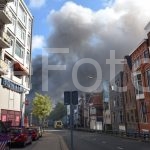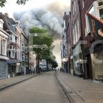 De brandweer heeft inmiddels twee peletons opgeroepen om deze zeer grote brand in de binnenstad te bestrijden.