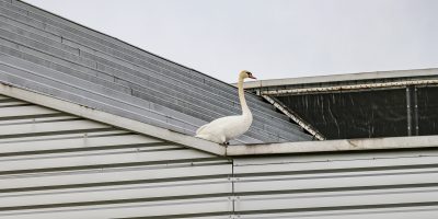 Zwaan vliegt tegen hoogspanningsmast en belandt gewond op dak van sportcentrum Kardinge